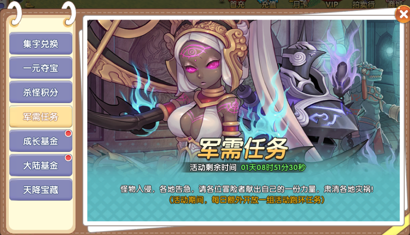 积分可通过钻石兑换或击败首领/领主获取,活动结束后积分清空,请及时参与哦! 军需任务